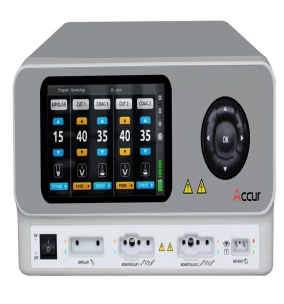 TURP Saline Energy platform with Dual monopolars One Touch : Touch screen 5.7” TFT Panel for flexible use Self Demonstration Mode User Programmable Recall Function Auto Mono Mode Auto Bip Mode Bipolar Cut & Coag BiCoag Alarm Dual Vessel Sealing Auto S